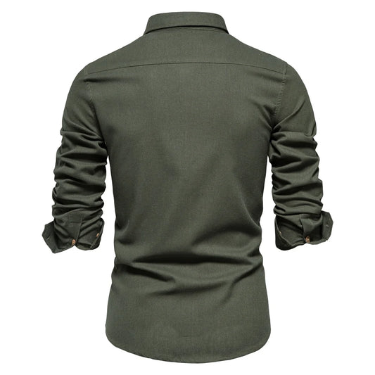 Strets & Hill Men's Cotton Long Sleeve Pocket Shirt, Solid Color